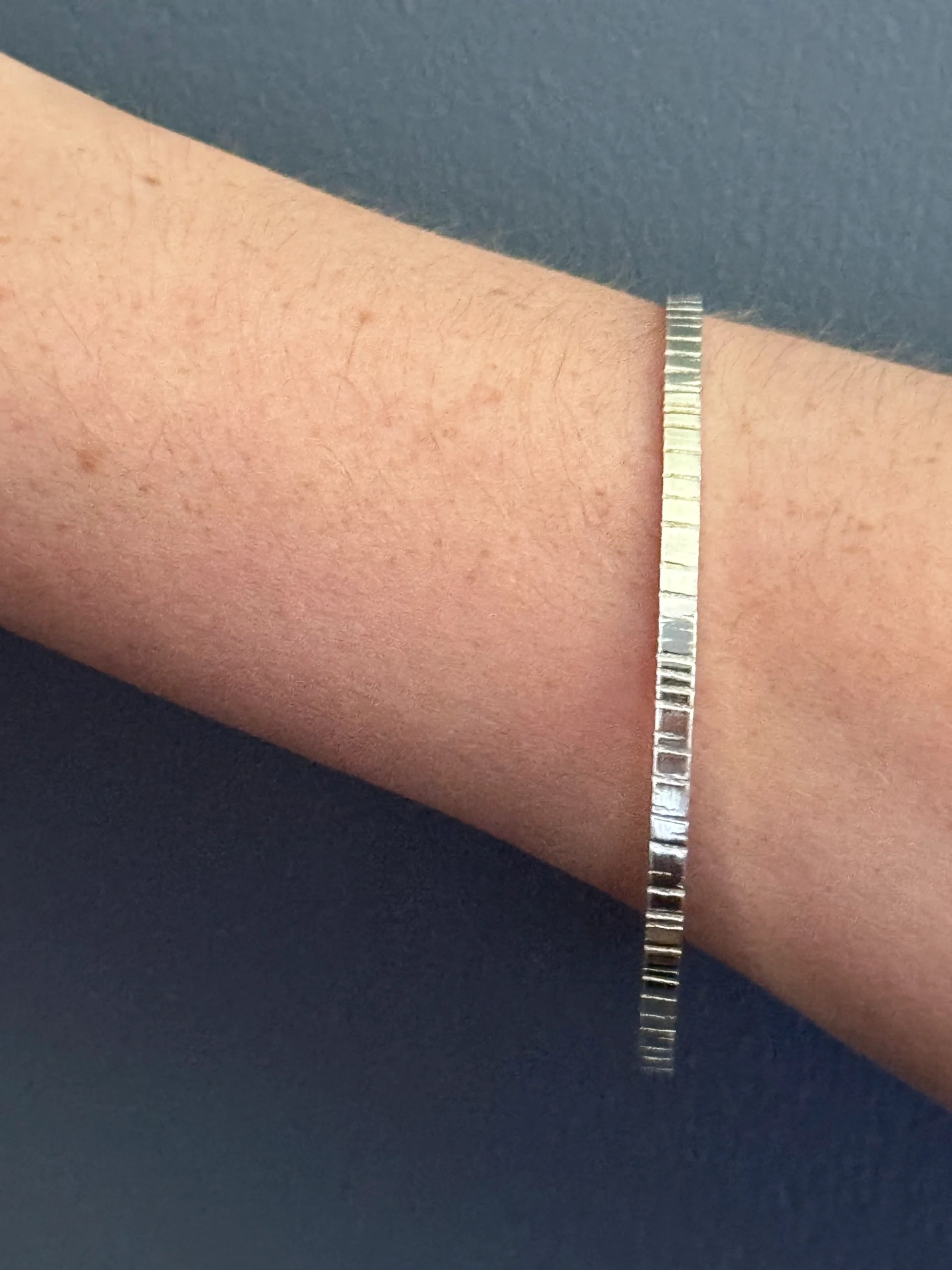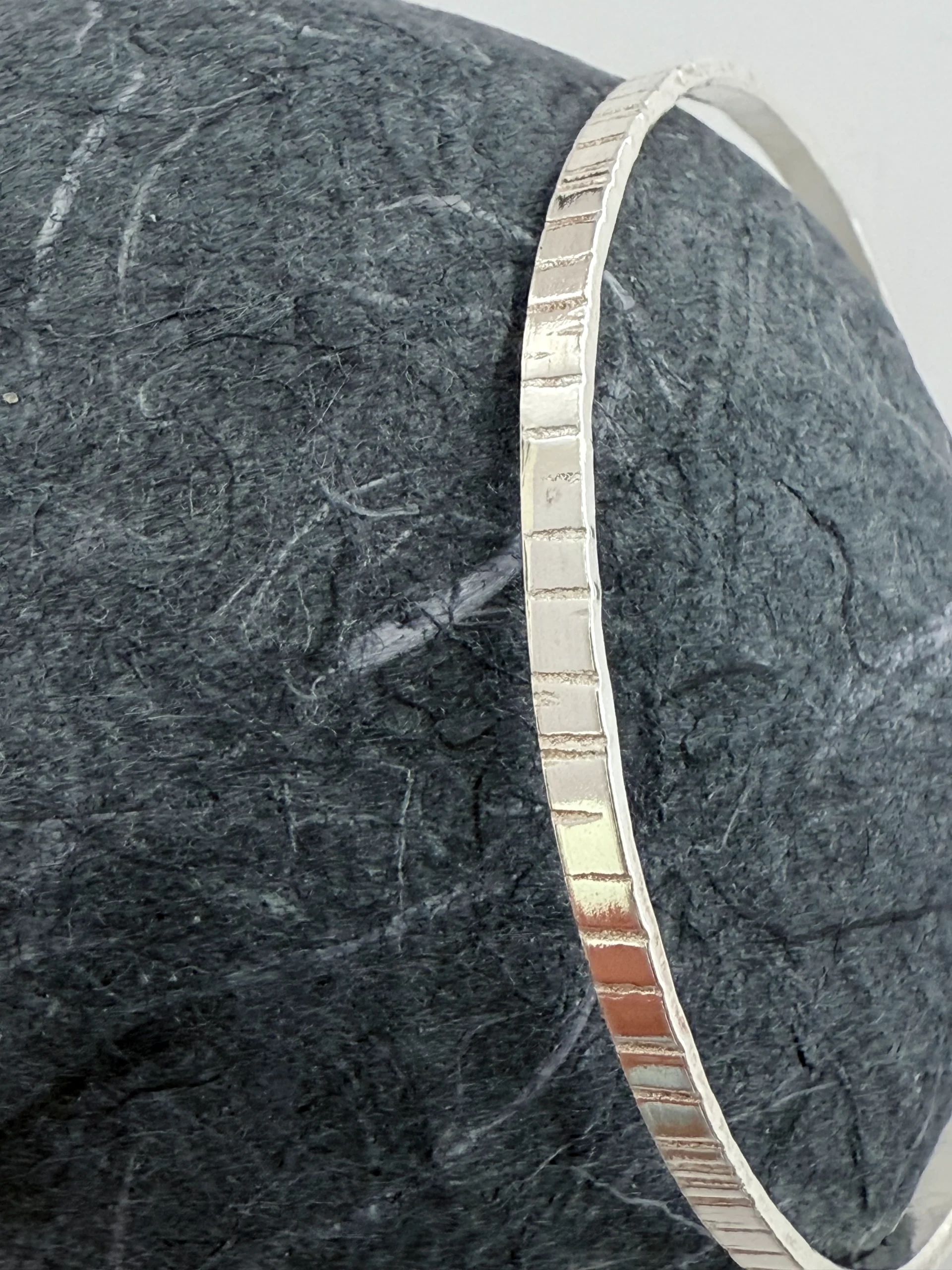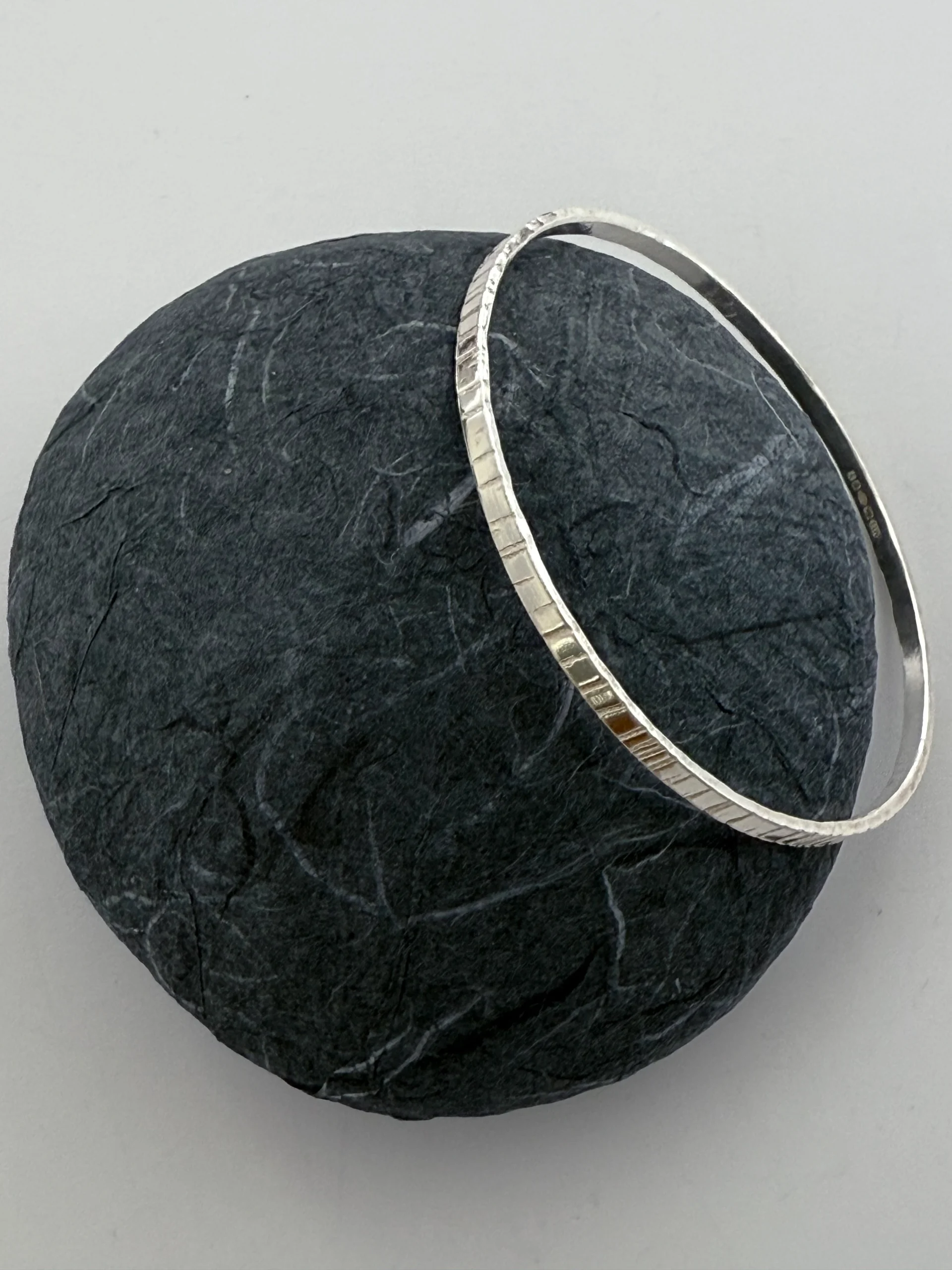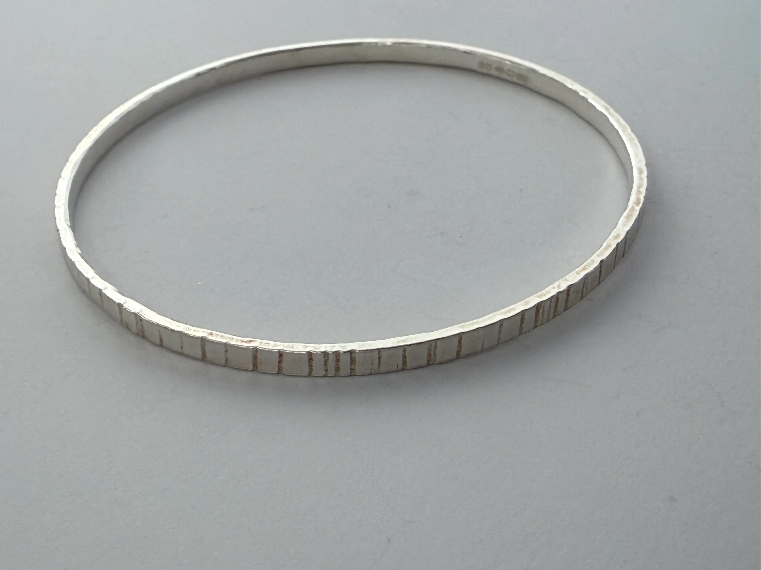Lines texture medium weight sterling silver bangle. Hallmarked